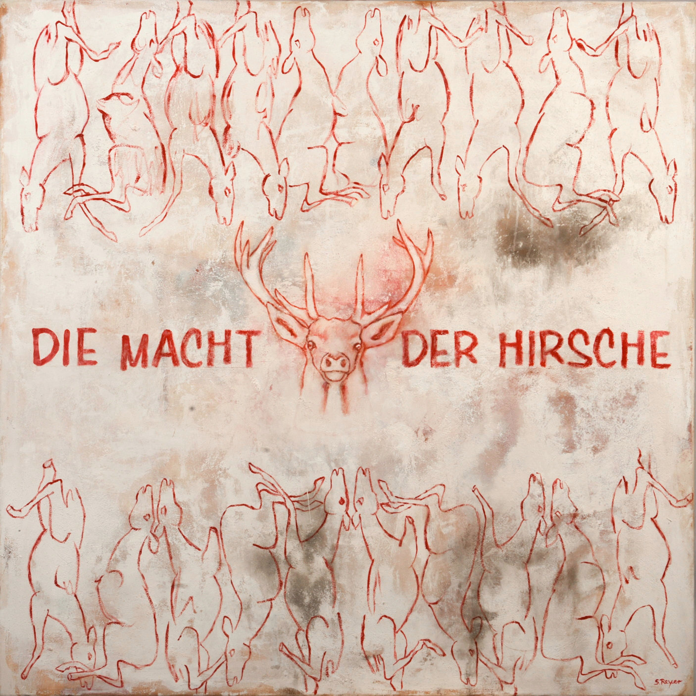 Plakat für Ausstellung Kunstfrieden im Alles wird schön Kunst und Kultur e.V. mit dem Bild Kuss von Sabine Reyer